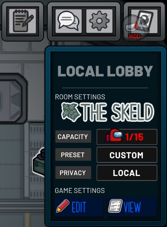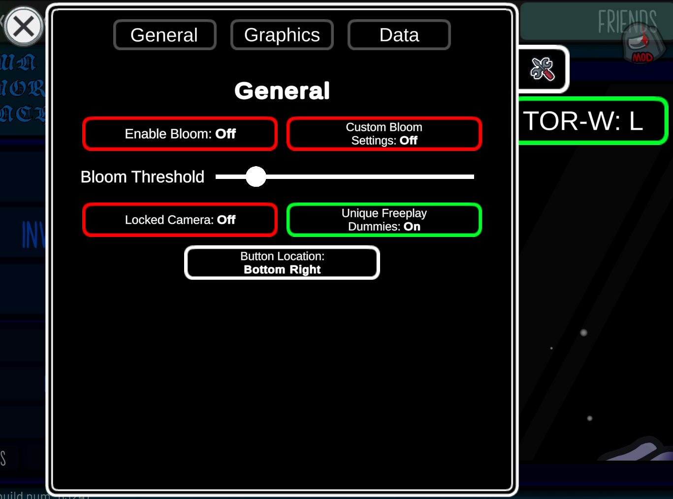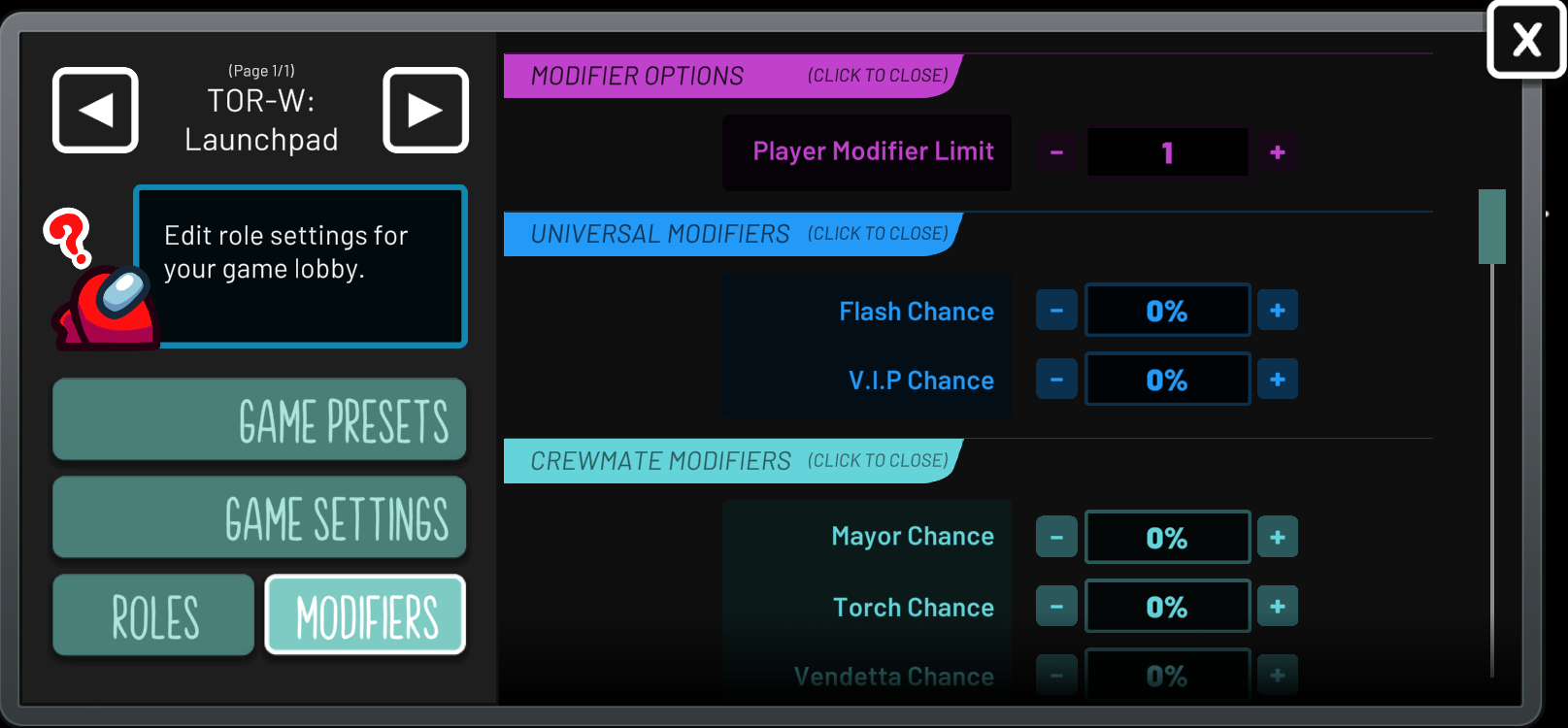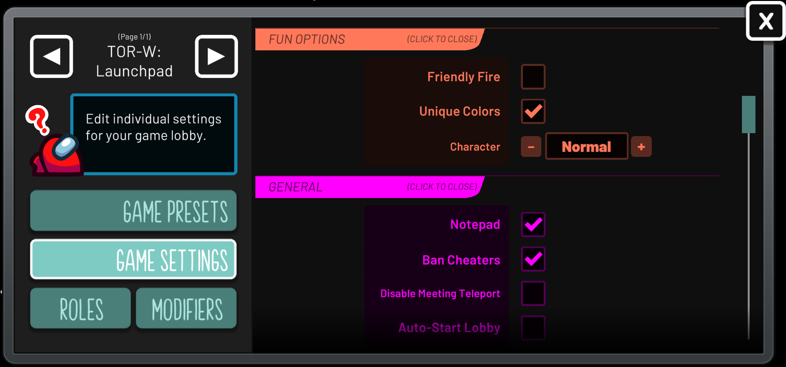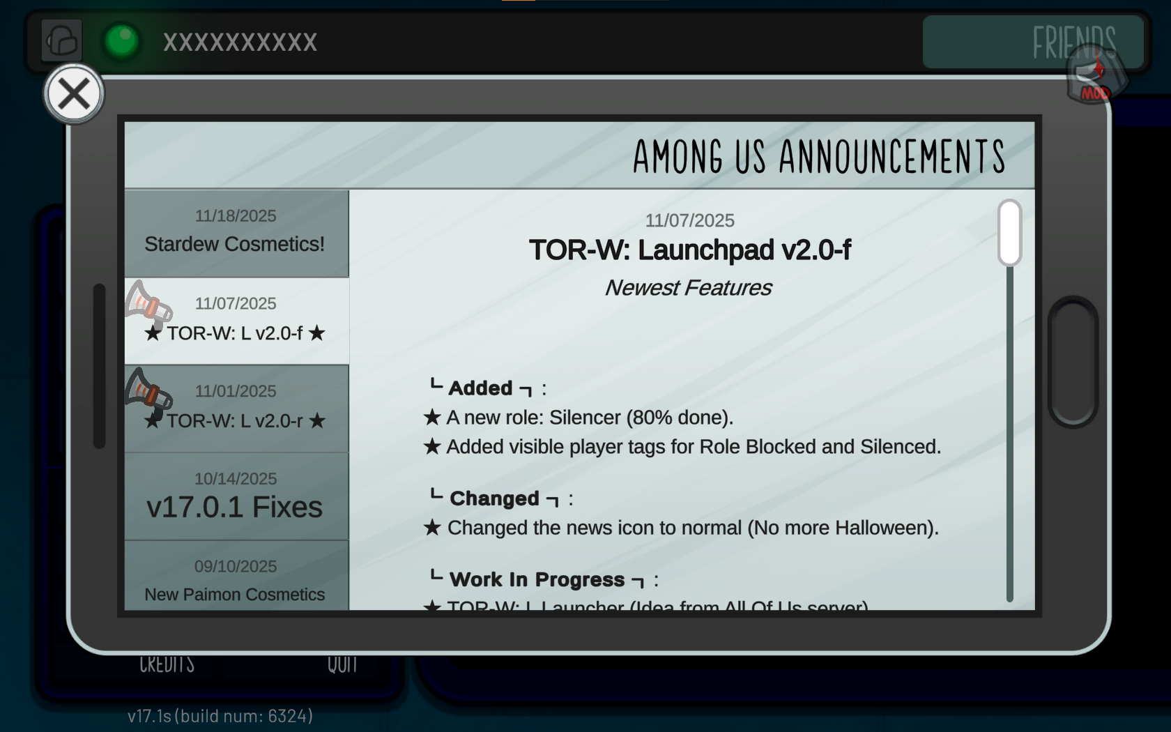 The UI has been set to fit the color theme of this mod — blue. It removes the normal Among Us logo and adds the custom TOR-W: L logo.